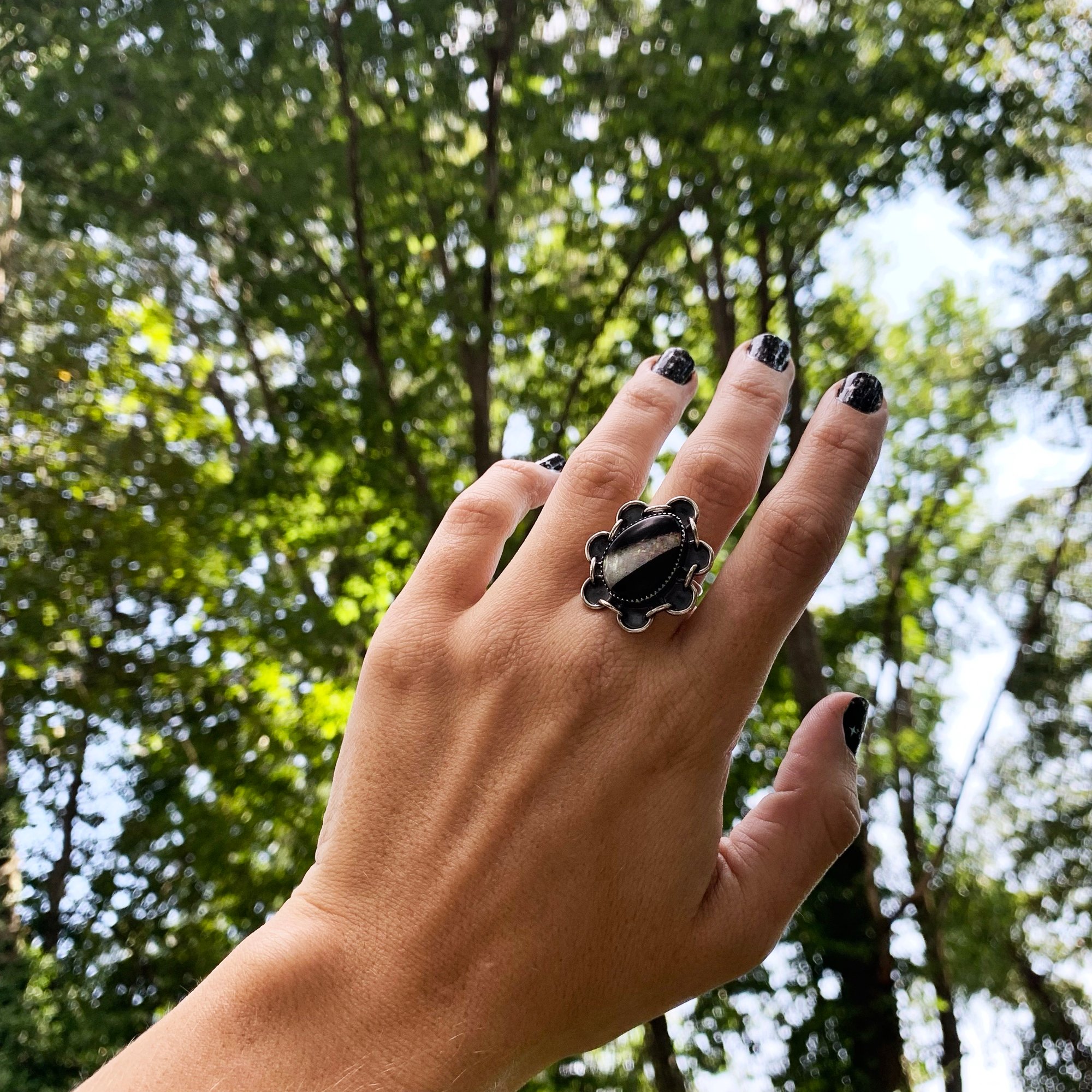 ⋆✶ Onyx + Opal Inlay Chain Ring ✶⋆Size 7.5⋆